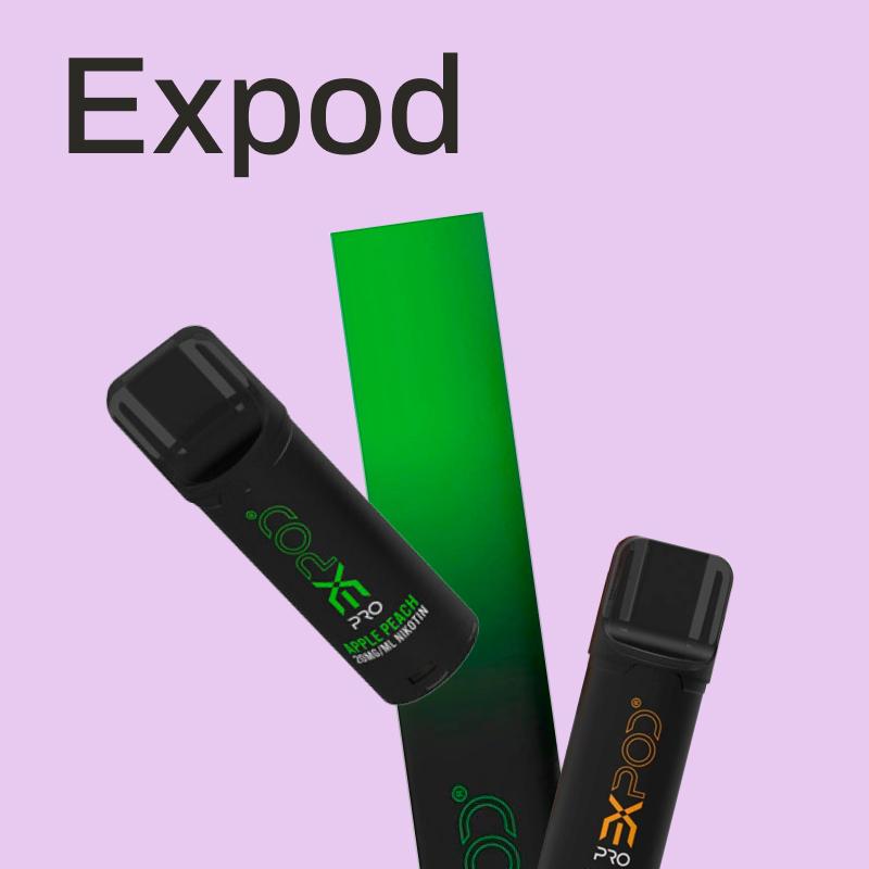 Expod ist eine Vape Reihe von der Marke Exvape. Das Expod Pro Pod System der Marke Exvape fällt sofort durch sein innovatives und ergonomisches Design ins Auge. Ausgestattet mit einem 400 mAh Akku, bietet das Basisgerät eine ausdauernde Leistung für den Alltag. Mit den dazugehörigen Pods, die in 8 geschmacksintensiven Varianten erhältlich sind, liefert das Expod System bis zu 600 Züge pro Pod. Jeder Expod Pod fasst 2 ml E-Liquid und bietet eine Nikotinstärke von 20 mg/ml. Das Expod Pro Basisgerät, verfügbar in vier modernen Farben, hat eine Größe von 91,5 x 16 mm, was es zu einem idealen Begleiter für unterwegs macht.