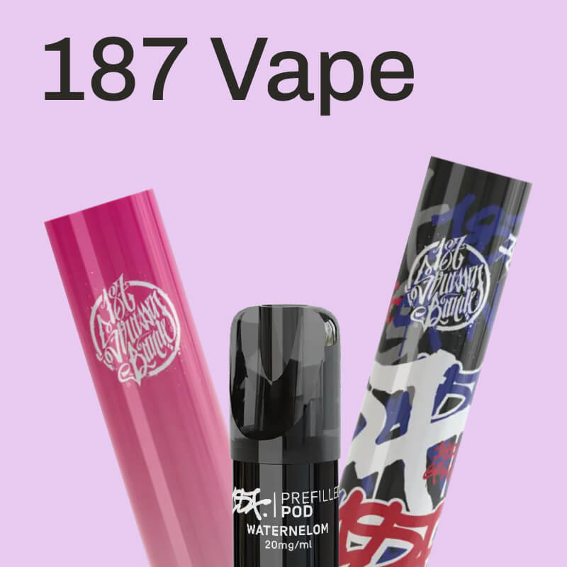 Die 187 Vapes ist eine Einweg E-Zigaretten Marke der berühmten Rapper Gruppe 187 Strassenbande, die speziell zur Schadensminimierung beim Rauchen konzipiert wurde. 187 Vapes bieten bis zu 600 Züge und verfügen über einen 550mAh leistungsstarken Akku und einen 2 ml großen Liquidtank, die für qualitative und reibungslose Dampfproduktion sorgen. 187 Vapes halten 1-3 Tage je nach Intensität des Dampfens und sind mit ihrer kompakten Größe von 110 x 18 mm eine gute Wahl für Dampfer, die oft unterweges sind und jederzeit in der Lage sein wollen, ein tolles Dampferlebnis zu genießen.