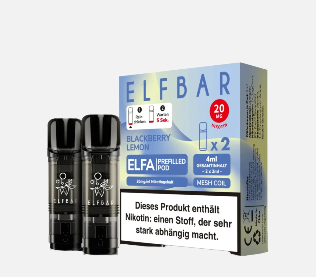 2× Elfbar Elfa Pods – Geschmack: Blackberry Lemon.