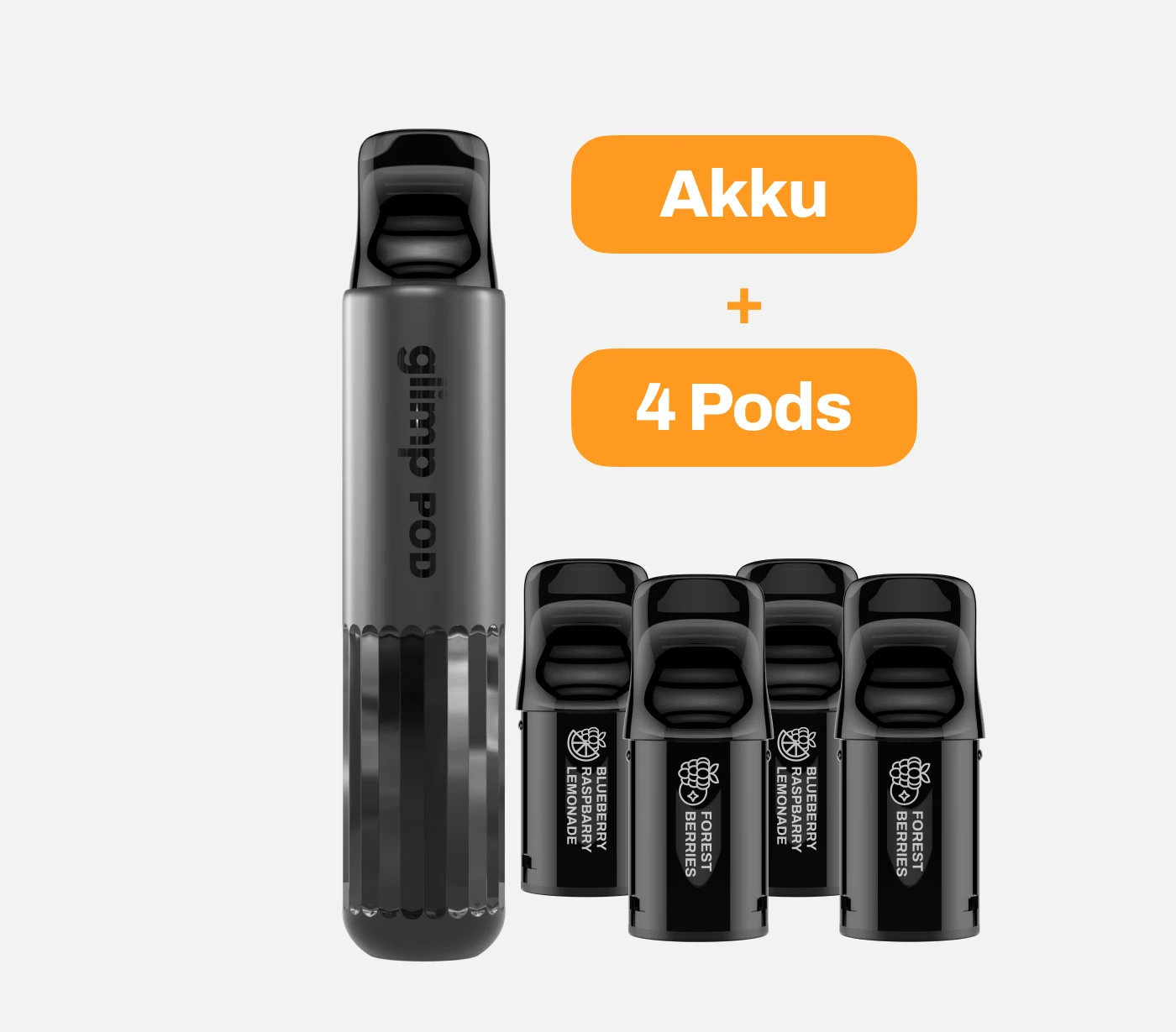1 glimp Pod Kit entspricht dem Inhalt von 4 Einweg-E-Zigaretten