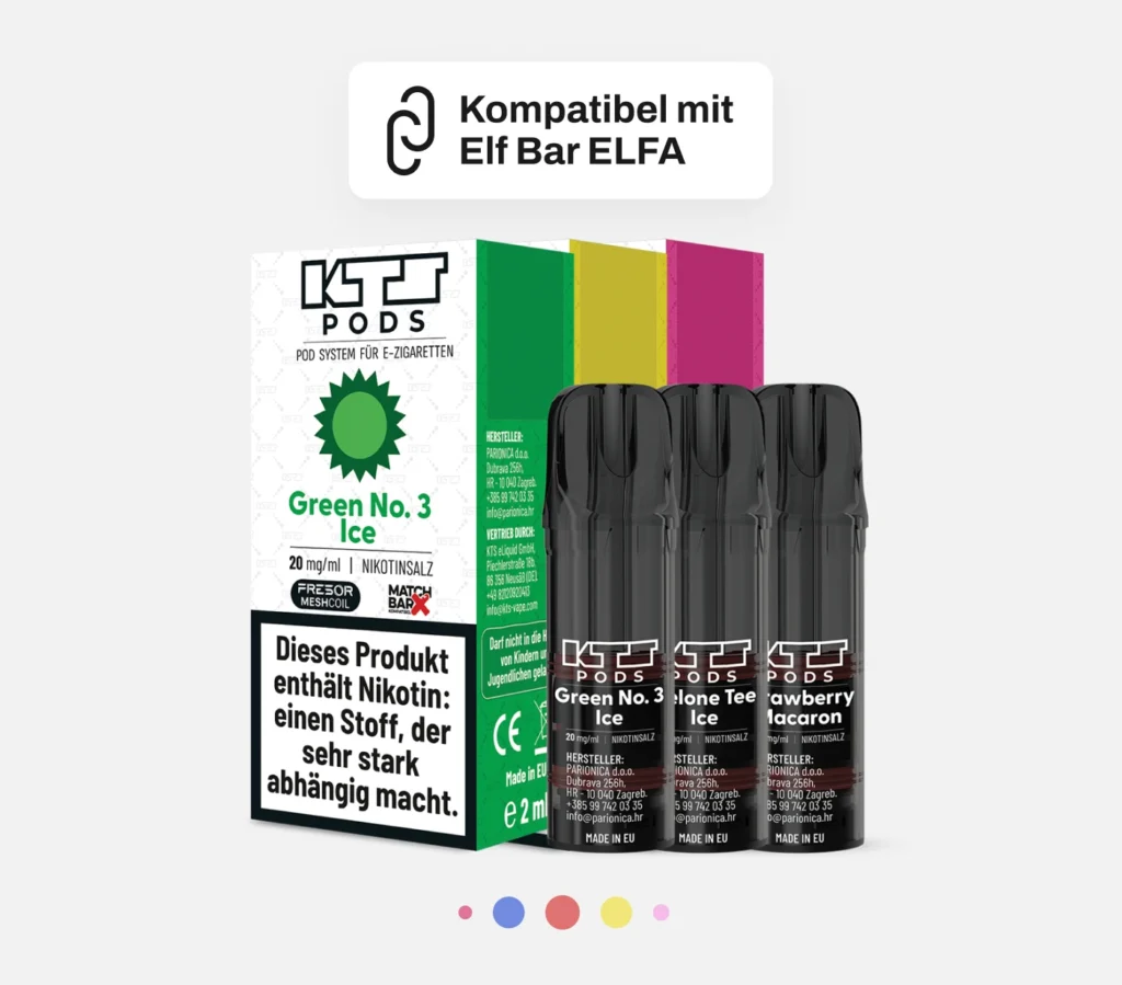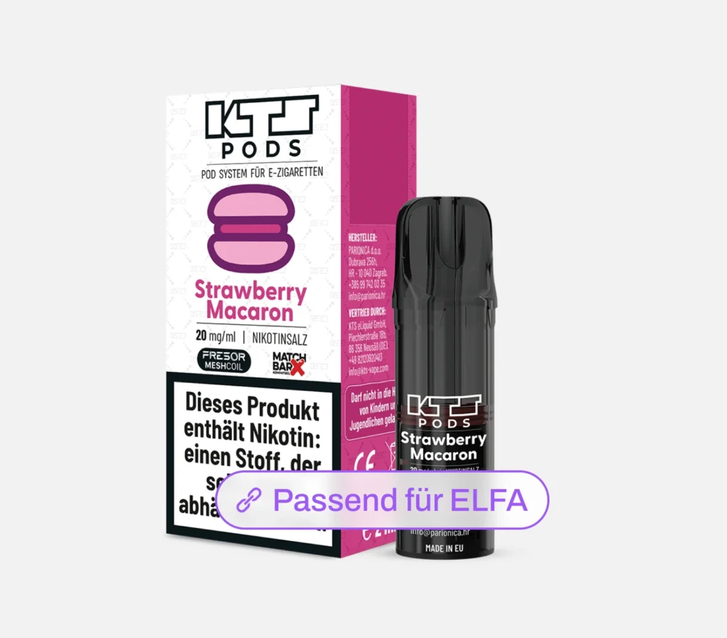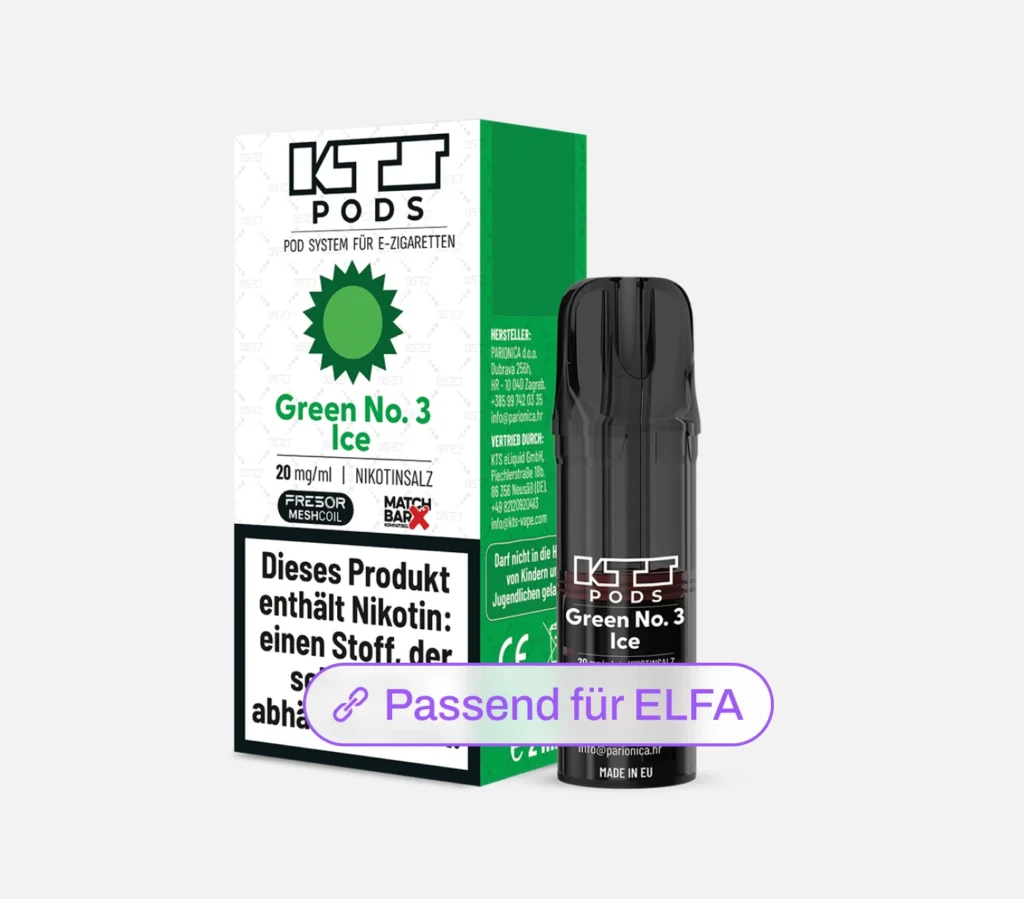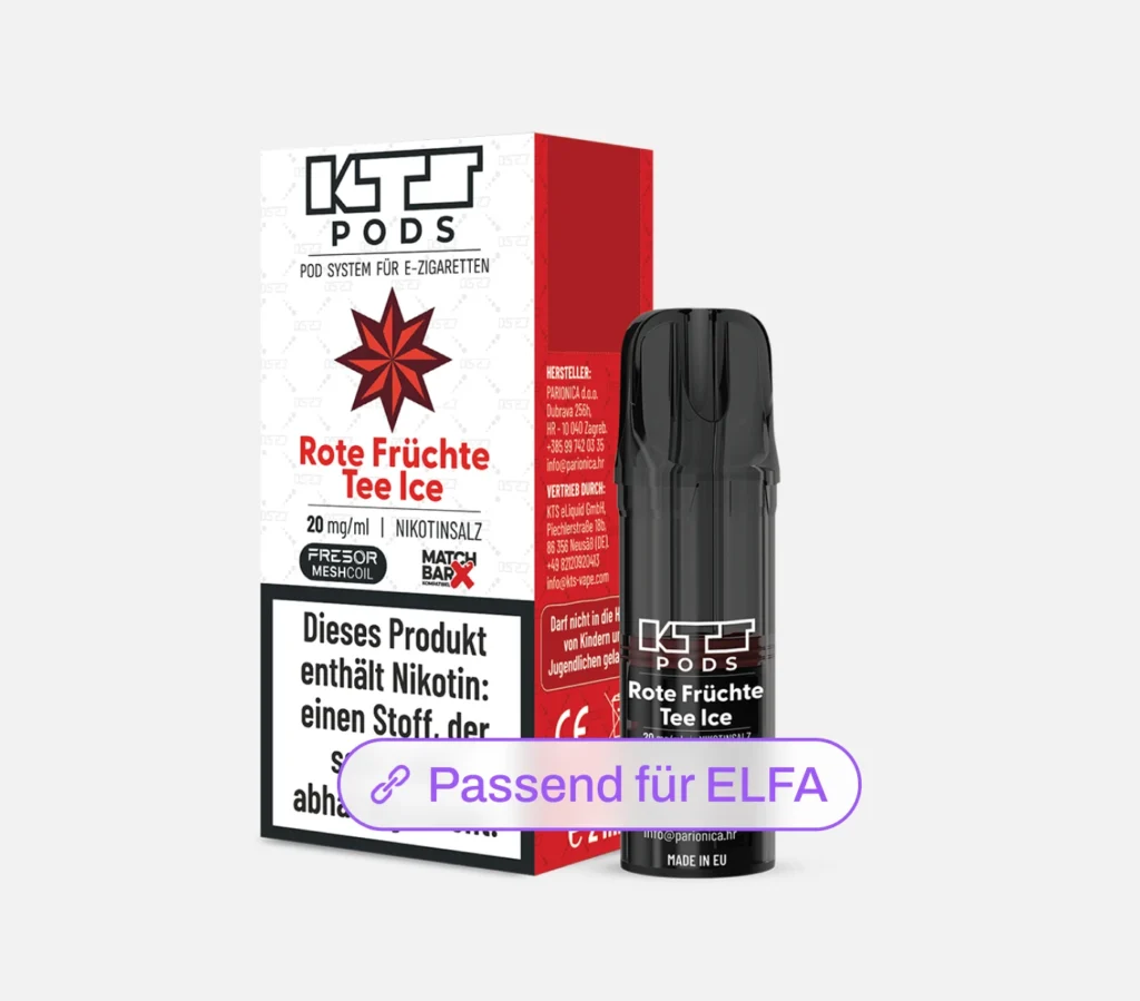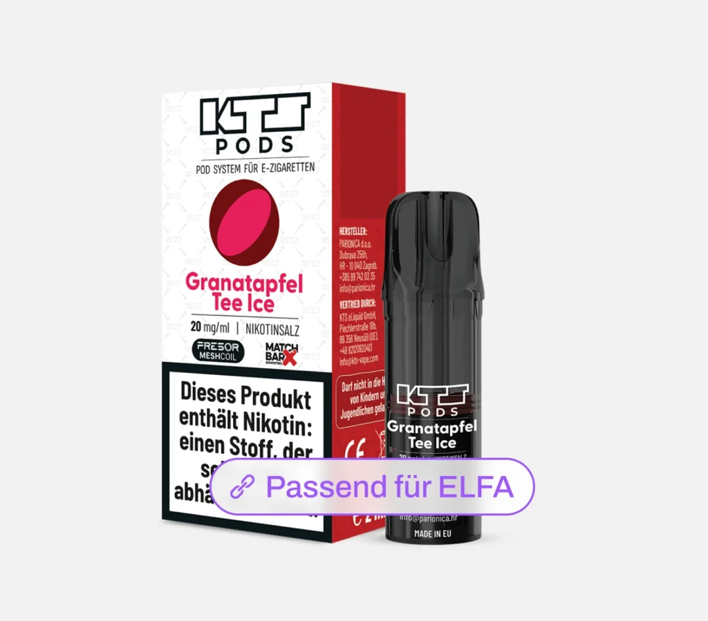 Die KTS Prefilled Pods bringen das beliebte KTS eLiquid-Erlebnis jetzt in einem vorgefüllten, sofort einsatzbereiten Pod-Format direkt auf dein Elfa-kompatibles Gerät. Jeder Pod ist mit 2 ml hochwertigem Nikotinsalz-Liquid (20 mg/ml / 2%) befüllt und bietet dir bis zu 600 Züge puren Geschmack und dichten Dampf – ideal für unterwegs oder den Alltag.