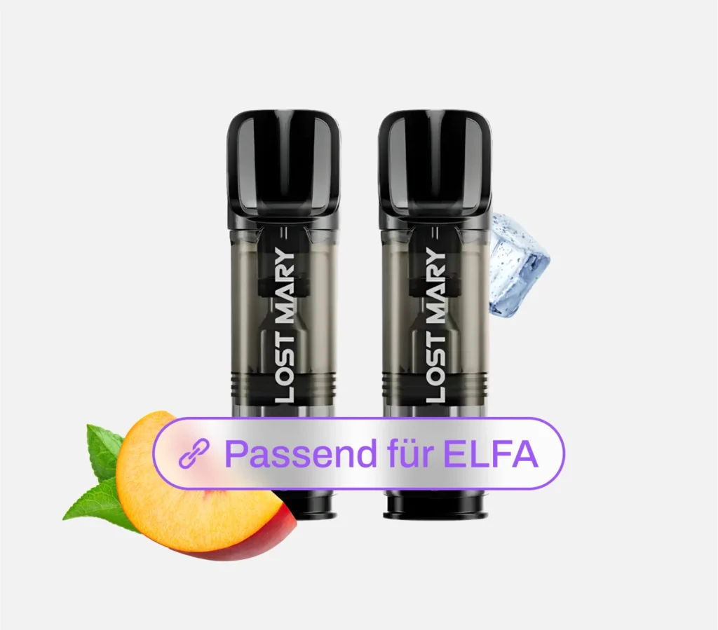 - Lost Mary Tappo Peach Ice: Saftige Pfirsiche mit einem Hauch von Kühle sorgen für ein erfrischend süßes Dampferlebnis.