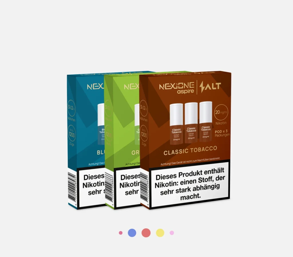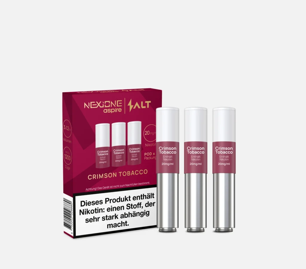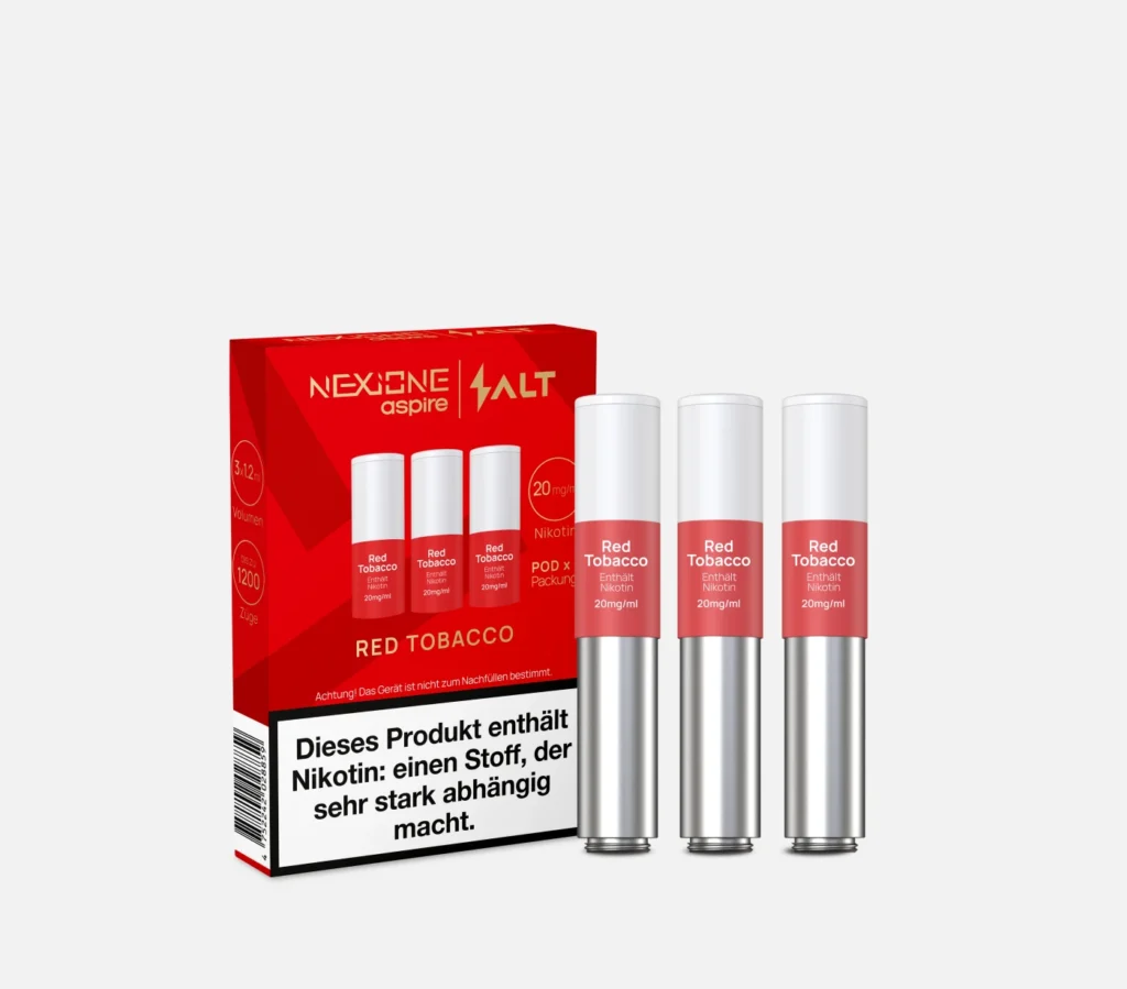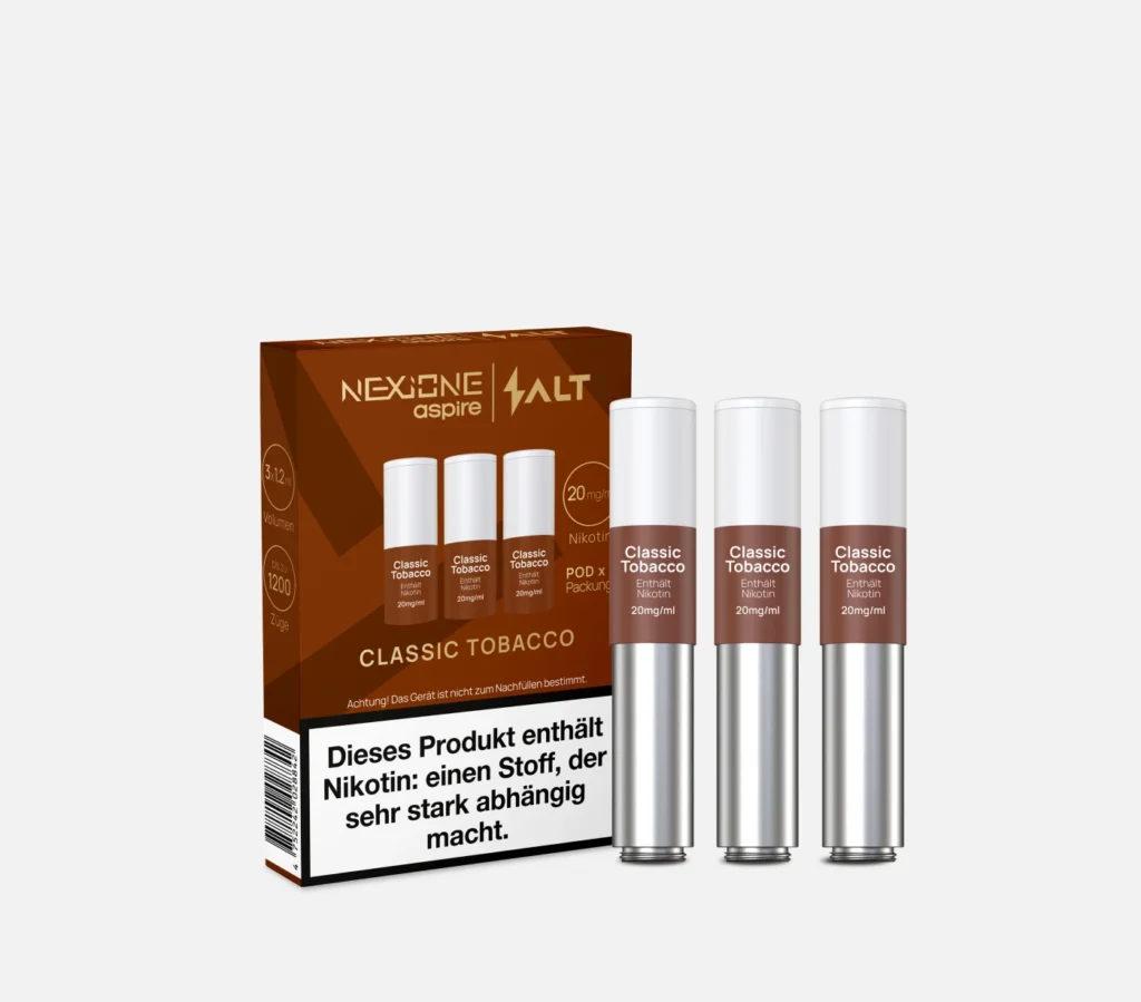 Die NexiOne Pods 3er Pack sind speziell für das Salt NexiOne Gerät entwickelt und bieten ein intensives, aromatisiertes Dampferlebnis. Jeder Pod fasst 1,2 ml E-Liquid mit einer Nikotinstärke von 20 mg/ml, was etwa 20 herkömmlichen Zigaretten oder HNB-Sticks pro Pod entspricht. Dank des zugaktivierten Systems müssen Sie lediglich am Mundstück ziehen – der Pod setzt sofort Nikotin und Geschmack frei. Wählen Sie aus verschiedenen Geschmacksrichtungen wie Classic Tobacco, Crimson Tobacco, Blue Tobacco, Menthol, Green Tobacco, Red Tobacco oder entdecken Sie weitere Sorten wie Virginia, Royal oder Velvet Tobacco. Mit ihrem Nickel-Chromium-Coil (1,6 Ohm) liefern die NexiOne Pods einen gleichmäßigen, angenehm kräftigen Dampf und ein intensives Aroma.