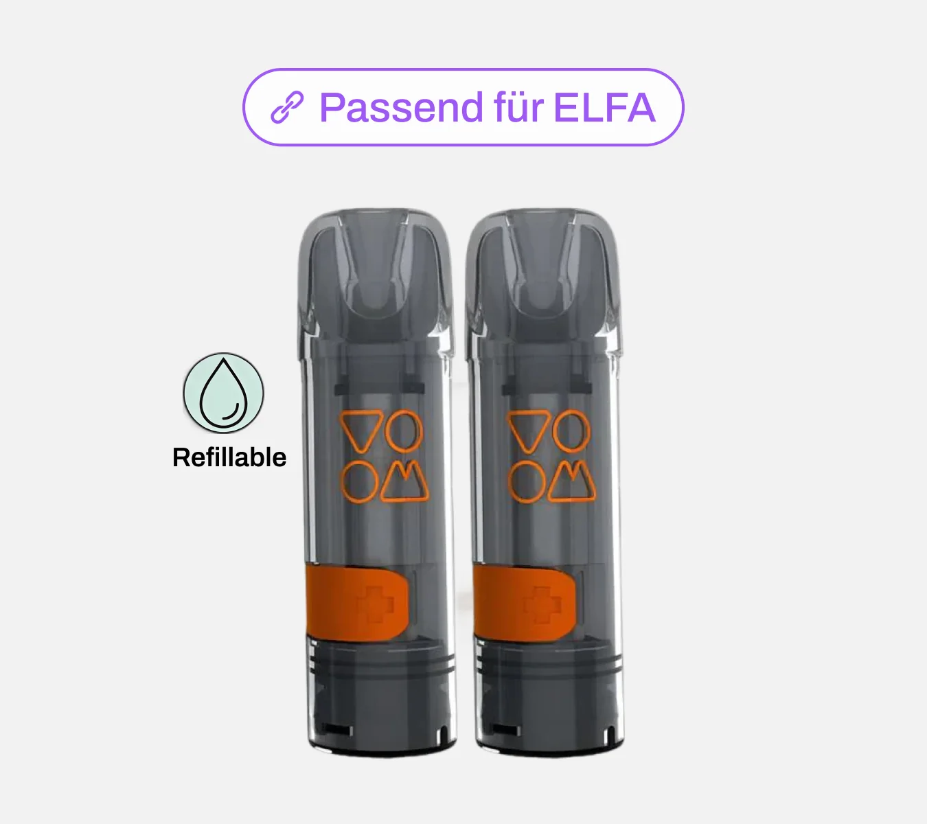 - 2 × Voom Refillable Pods (leer, 1,2 Ω / 2 ml)